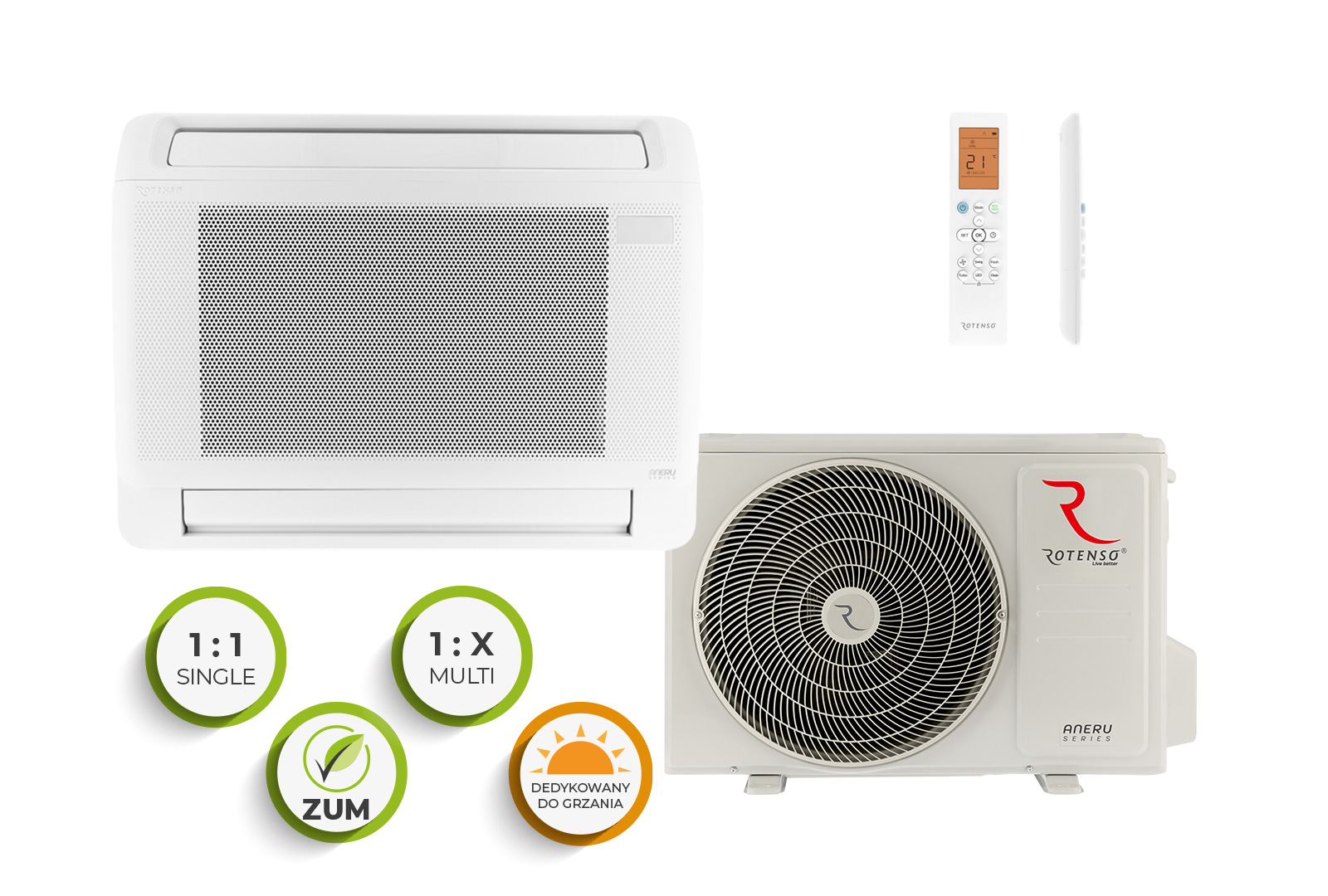 “Rotenso Aneru” – tai konsolinis oro kondicionierius, kurį dėl dvipusio išleidimo aukštyn ir žemyn galima montuoti arti grindų. Dėl unikalios konstrukcijos oro kondicionierius tinka naudoti patalpose, kuriose yra specifinių apribojimų, pavyzdžiui, daug gembių ir žemos kelių sienos, pavyzdžiui, palėpėse. Aneru taip pat yra populiarus pasirinkimas klientams, norintiems išvengti įrenginio eksponavimo prie lubų.