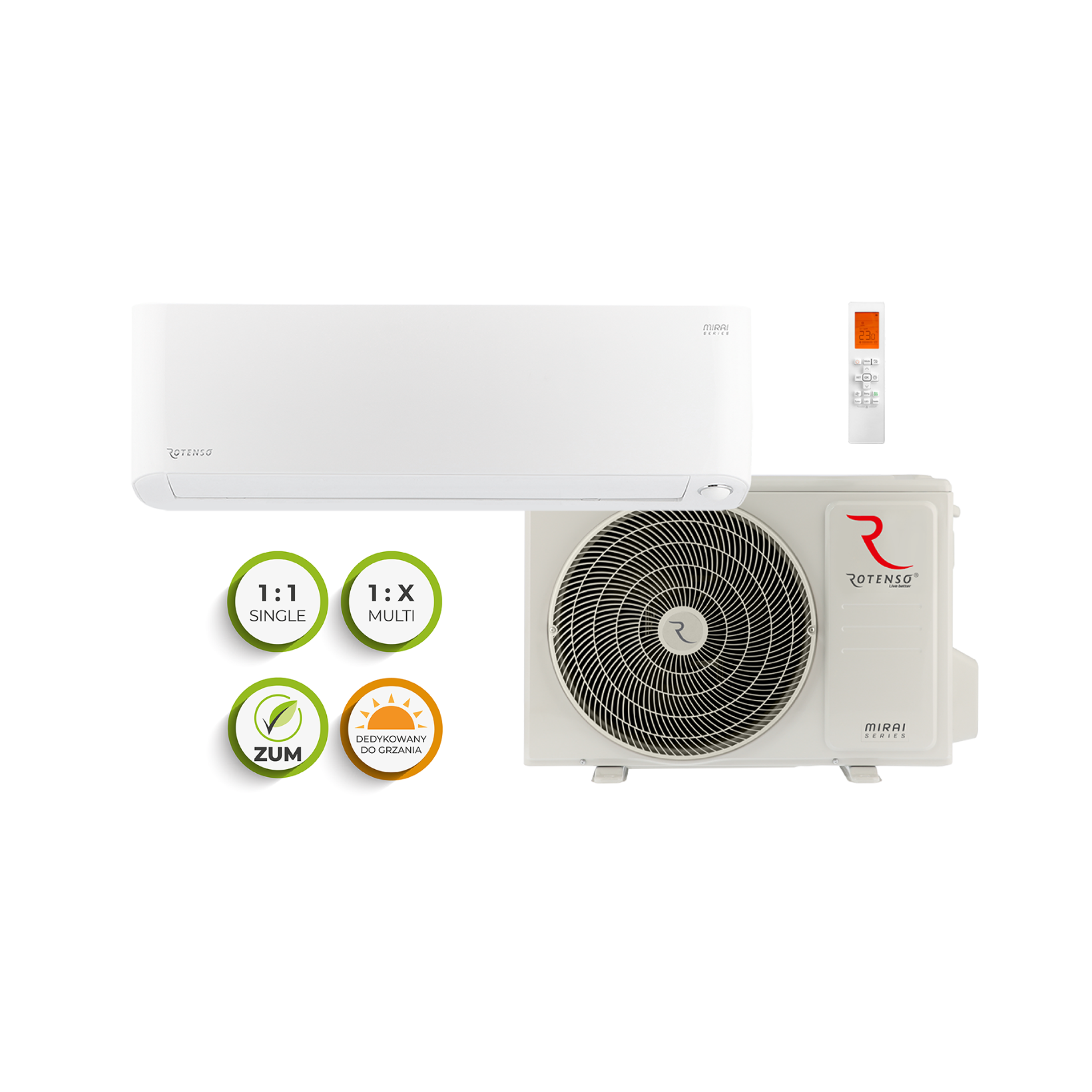 Aukščiausios klasės “Rotenso” oro kondicionierių asortimento modelis. “Mirai” modelyje (X karta) įdiegta itin efektyvi technologija, užtikrinanti aukščiausią A+++ energijos vartojimo efektyvumo klasę. Pažangi inverterio technologija leidžia pasiekti precedento neturintį oro kondicionieriaus našumą net tada, kai lauko temperatūra nukrenta iki -30 °C.