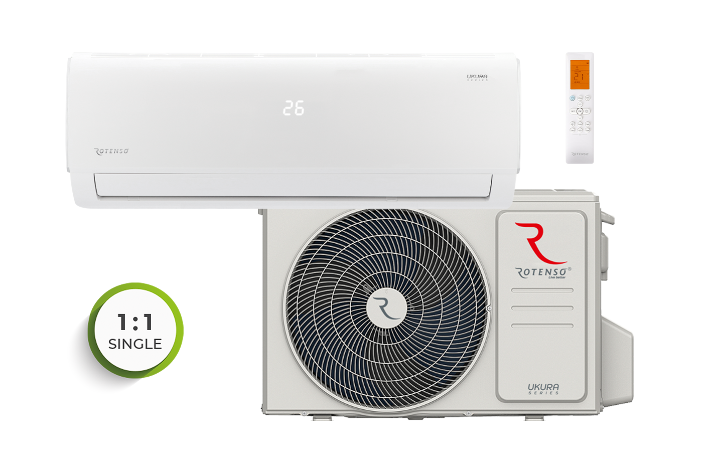 Kompaktiškas oro kondicionierius su moderniomis priekinio skydelio kreivėmis, išryškintomis subtilia sidabrine apdaila. Rotenso® Ukura (X karta) yra ekonomiškas įrenginys, pasižymintis aukšta A++ energijos vartojimo efektyvumo klase. Oro kondicionierius efektyviai paskirsto orą dėl 4D automatinės ventiliatoriaus sistemos. Ji leidžia vertikalių ir horizontalių žaliuzių veikimą valdyti nuotolinio valdymo pulteliu. Naudojami papildomi filtrai: HEPA ir “Cold Nano”, taip pat elektrostatinį filtrą ir oro jonizatorių, turi įtakos veiksmingam teršalų pašalinimui ir užtikrina gaivų orą patalpoje.
