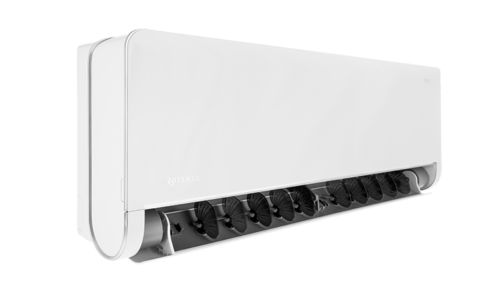Švelnus 180° kaskadinis oro išleidimas per horizontalias žaliuzes, kurios sukasi aplink savo ašį, tylus veikimas – tik 19 dB – ir pažangi oro valymo sistema – tai šio itin efektyvaus, ištisus metus veikiančio įrenginio, turinčio aukščiausią vėsinimo energijos efektyvumo klasę A+++, privalumai.