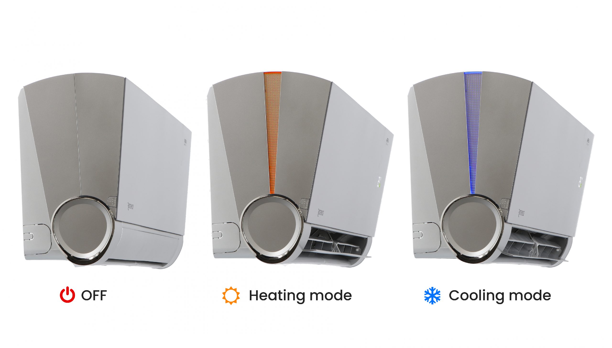 Prabangų “Versu Silver” charakterį dar labiau sustiprina subtilus foninis apšvietimas – mėlynas, kai veikia vėsinimo režimas, oranžinis, kai veikia šildymo režimas.